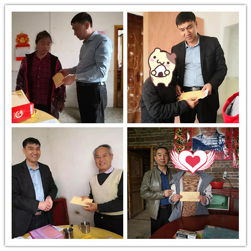 下图:爱心人士给学生家庭捐赠爱心款。